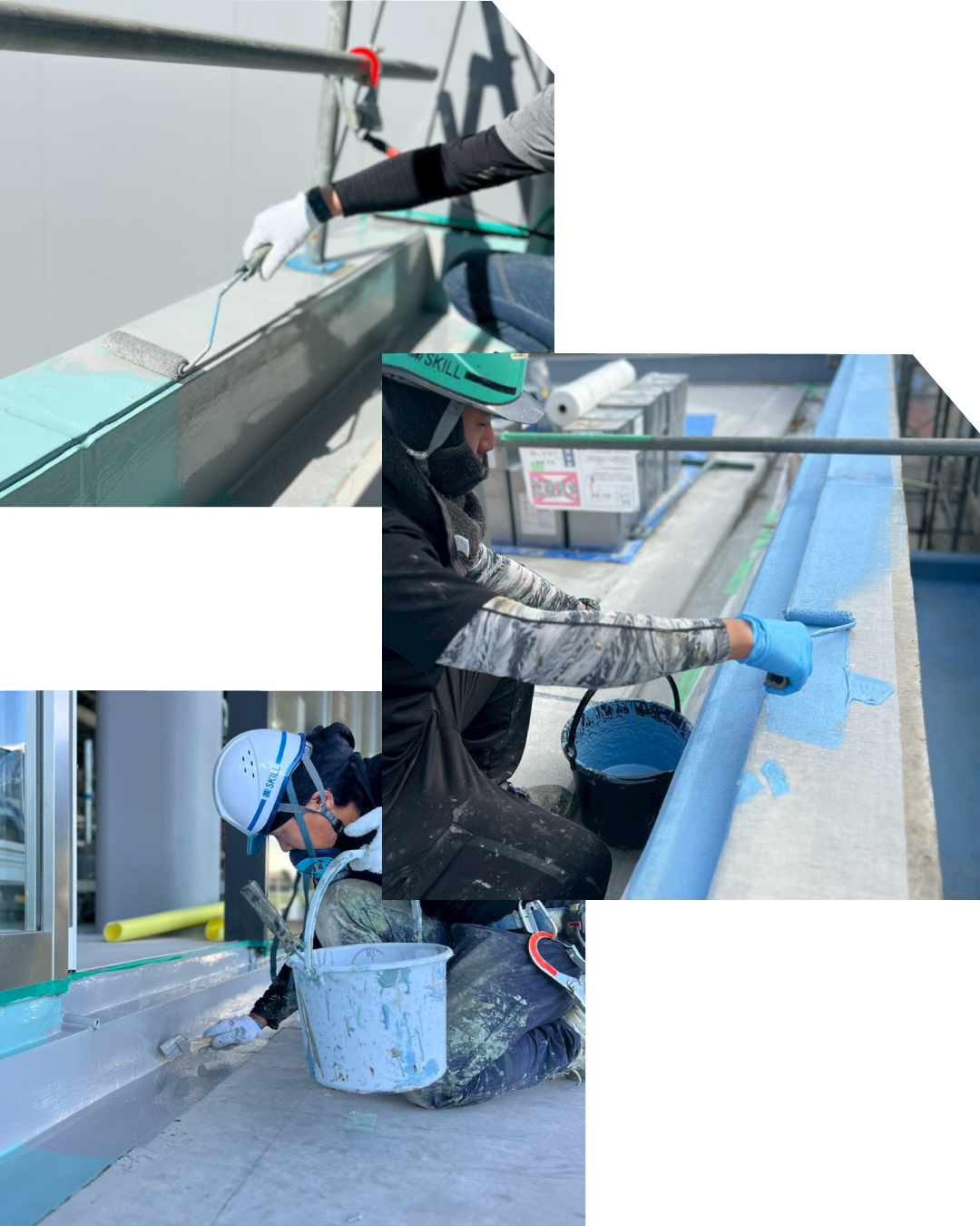 防水工事は、建物の寿命を左右する重要な役割を担っています。雨水の侵入を防ぎ、構造体を守り、住む人・使う人の安全と快適性を支える。だからこそ、一つひとつの工程を確実に、妥協することなく仕上げることが、私たちの使命だと考えています。